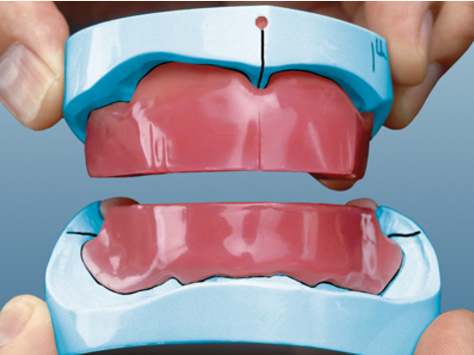 Under tillverkningen av basplattan kan din tekniker behöva blockera eventuella underskärningar på huvudmodellen för att förhindra brott. Detta kan resultera i en något löst sittande bottenplatta vid provning. I sådana fall kan en liten mängd tandproteslim användas för att förbättra stabiliteten. När tandprotesen är bearbetad kommer passformen att vara exakt.